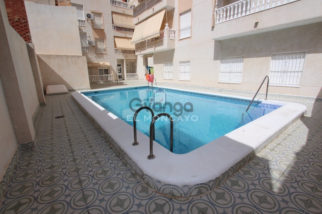 Apartment in the center of Guardamar del Segura, facing east, is only 5 minutes from the beach and a few meters from the main services, bars and restaurants in the area.The house has a room with a bathroom, kitchen, living room with access to the terrace.The community has an elevator, solarium and community pool. Communal Pool