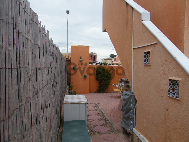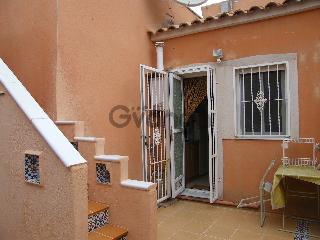 Here we have great pleasure great pleasure offering to the market this modern semi-detached bungalow, situated within easy reach of all village amenities. Occupying the corner plot, this delightful property comprises 2 bedrooms (both with fitted wardrobes), full bathroom, American-style kitchen leading out onto the patio to the rear of the property. The lounge/dining area leads from the front door onto the porch. The plot has been tiled/terraced with external stairs leading up onto the solarium where you can enjoy unobstructed views over the Vega Baja. This immaculately kept semi will be ideal as either a holiday home, or permanent residence, set in a tranquil environment. Viewing essential! Off Street Parking