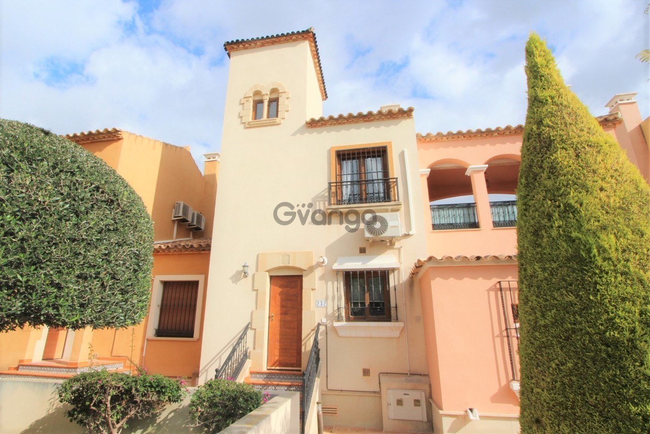 We are really pleased to offer this TOWNHOUSE situated on the prestigious La Finca Golf Resort. As you walk into the property there is a hallway that provides access to the lower level, immediately to your right there is a well thought out kitchen that has all the modern day appliance you will need to make your stay easier be it for just a week or on a more permanent basis! Moving further down to your left a is a downstairs cloakroom, which is a real benefit, you then walk into a large lounge/dining area, which is a great living space with feature fireplace and air-conditioning, there are glass sliding doors that take you out onto a lovely terrace to sit outside and relax with a book, from here there are steps down to the garden which is gravelled for easy maintenance.