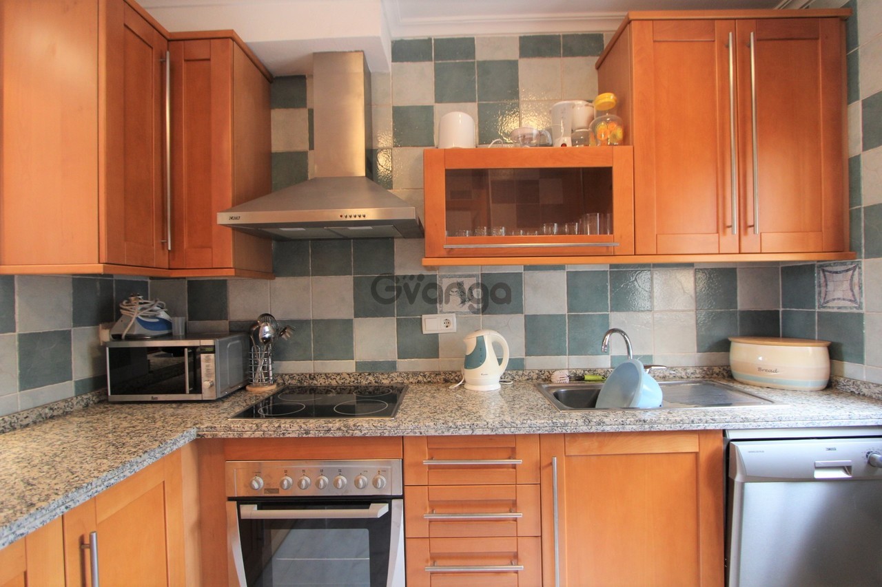 Moving back inside and to the front of the property there is a stairway that takes you up to the 1st floor where you have a very large bathroom, which could be converted to two shower rooms if you require? Next you have the master bedroom, which is the bigger of the two bedrooms and has air-conditioning, fitted wardrobes and ample room for a double bed, you then have the guest bedroom which has air-conditioning, fitted wardrobes and two single beds. You then continue up the stairway to the 2nd floor, where you come out onto a large solarium, which is an ideal area to relax and top up your tan or just relax with friends and a drink!