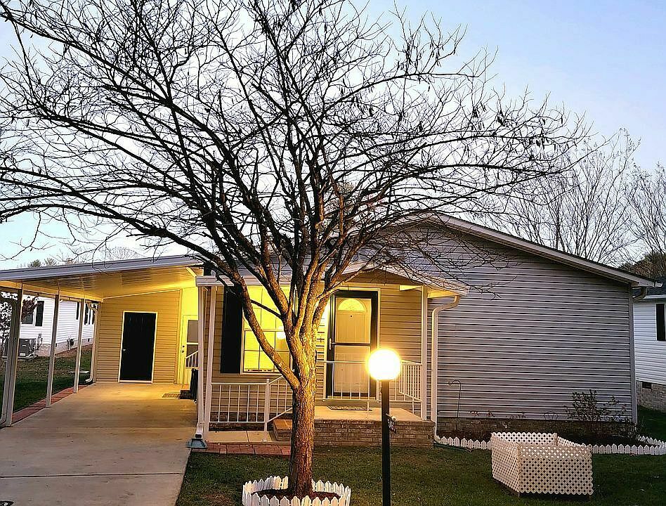 This bright spacious, modern 3 bdr 2 bath double wide modular home was designed by R-Anelll Housing Group and is located in one of Hendersonvilles most desirable Retirement communities, Dana Hill. A quiet neighborhood in Hendersonville NC, that is surrounded by the Blue Ridge Mountains, is known to have a moderate climate with a small-town feel. All of Dana Hills Community properties are on leased lots with friendly neighbors, an outdoor pool, indoor shuffleboard courts and so much more. . . Easy access to shopping centers, restaurants, highways, and a neighborhood driving range. Step inside this beautiful dream retirement home fall in love with the St. James collection of laminate flooring throughout, witness the inspiring open spaces freshly painted walls. The insulated windows updated HVAC split system will keep you warm in winters staying cool in the summer. Enjoy sipping cocktails at the kitchen bar or spending time with family friends in the well-lit living room that is designed for entertaining guests. This open floor plan leads to the kitchen built with custom-made cabinets, 2 large pantry closets with pull-out shelves, plenty of counter space while cooking with the range top oven. Walkthrough the sliding glass doors which open to a beautifully updated sunroom that is surrounded by glass windows rich with natural light. Retreat to the privacy of the luxurious master bedroom, engulfed with sunlight, a ceiling fan, walk-in closet equipped with extra shelving. Hideaway in the remodeled master bathroom with a spacious storage closet, 2 sink mirrors, medicine cabinet, and shower. This house comes with appliances ready for use and an updated utility shed designed to help stay organized or become your new workshop. Whether relaxing in the sunroom, entertaining guests in the living room, soaking in the bathtub which radiates moonlight from the skylight above or swimming at the community pool, this captivating property has everything you dream for Come see why Dana Hill Retirement Community is the most desirable destination for 55 retirees.
