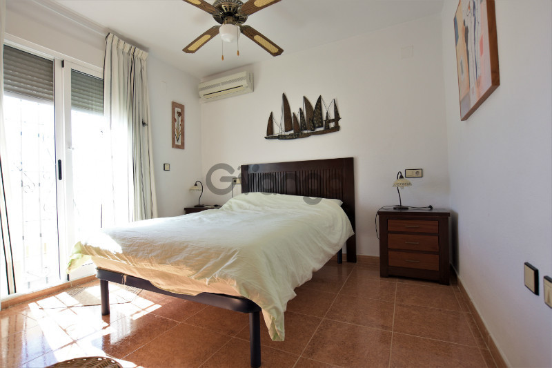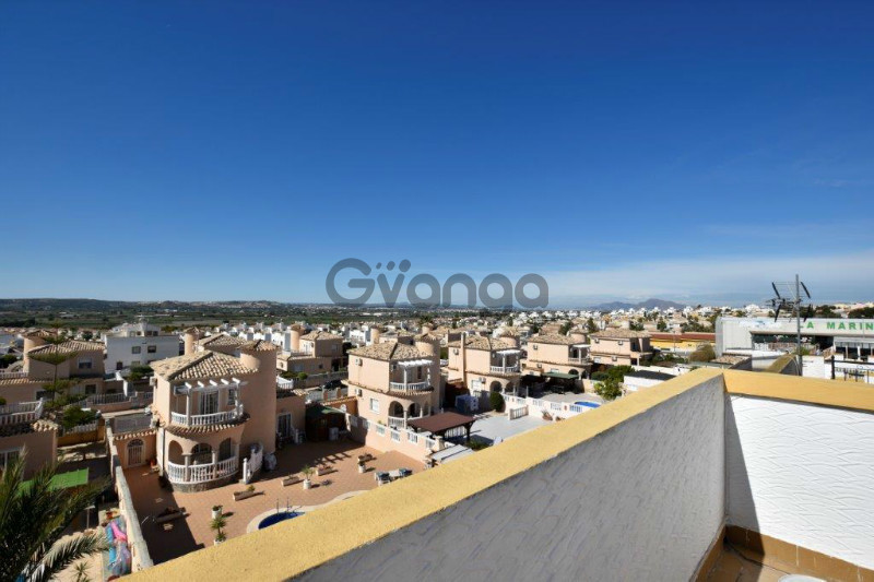 Presenting this great semi detached villa, situated on a quiet corner plot in La Marina. The villa consists of, on the "ground floor", 1 double bedroom with fitted wardrobes, separate kitchen, lounge and dining room and 1 bathroom. On the "first floor" there are 2 double bedrooms with fitted wardrobes, and one bathroom. Property comes fully furnished, with alarm, double glazing, security grills and air conditioning. The exterior space features a private solarium with fantastic views, private garden, private terrace with awnings. The nearest beach is only a 10 minute drive away. Worthwhile booking an appointment to view.