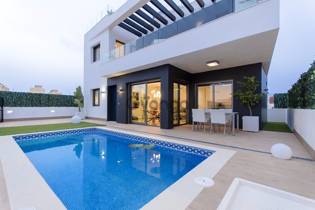 Spectacular independent villa with all comforts in the reputed urbanization Villamartín of Orihuela Costa. Property of design with 124 m2 built plus a plot of 188 m2. It has 3 double bedrooms with built-in closets, 4 bathrooms -3 of them en suite-, open kitchen, living room, private solarium and terrace. In addition, it has a private pool, garden and parking. All this just a few minutes drive from the beaches of Orihuela Costa and very close to the main shops and services of the area. Private Pool