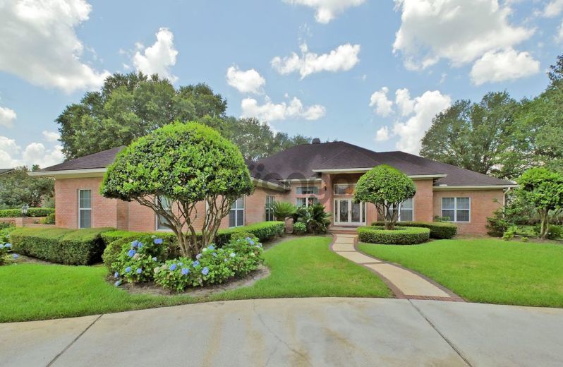 Beautiful custom built all brick Deerwood home on a beautifully landscaped lot. This one owner home, built in 1996 is a rare find in Deerwood with an open concept and soaring 13ft ceilings throughout. Enter the double glass doors into a large foyer open to a spacious family room, living room and dining room separated by half walls and columns. This soaring space is the heart of the home and an entertainers dream. The expansive family room has a gas fireplace, custom built bookcases, wet bar with granite countertop and custom built cabinetry. A separate generous sized kitchen allows you to prepare without guests seeing your mess. The large kitchen has custom built cabinets, island with gas stove, gas oven, built in microwave oven, walk in pantry, desk and a breakfast nook with door leading to covered porch and surrounded by windows overlooking the fruit trees. A large master bedroom with seating area, trey ceilings and extra closet space make this a private retreat. The master bathroom has double sinks and his and her walk in closets. Three more large bedrooms all with walk in closets complete the space. The oversized 3 car garage has tons of storage area and a half bath to be used when working or playing outside. An irrigation well for the yard and landscaping and a large circular driveway and oversized courtyard complete this magnificent home. This home is a must see in Deerwood Golf and Country Club