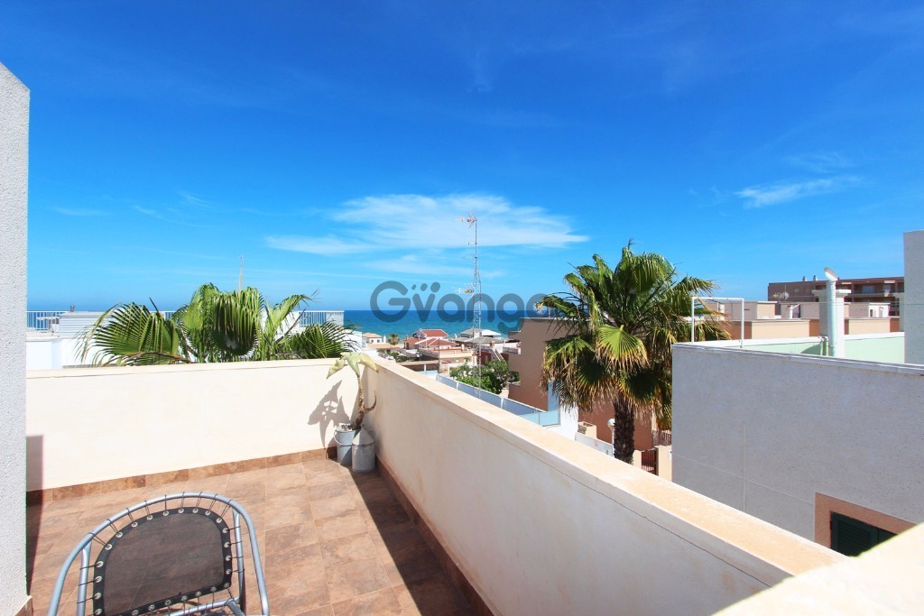 Great duplex bungalow with 4 bedrooms and private solarium 300 meters from the beach of Guardamar del Segura - Costa Blanca South. Recently renovated property of 140 m2 with terrace of 20 m2 and private solarium of 30 m2. It has 4 bedrooms, 2 bathrooms, kitchen and living room. It also has a patio, barbecue area, garden and underground parking. Property fully equipped with furniture, appliances and air conditioning. Ready to move into. Exceptional location just 100 meters from the main services and shops and 300 meters from the beach of Guardamar del Segura. Sea Views