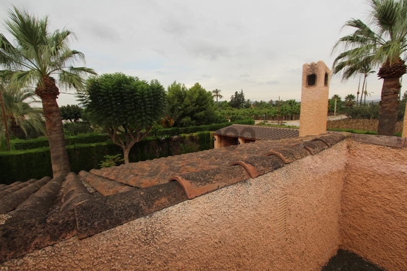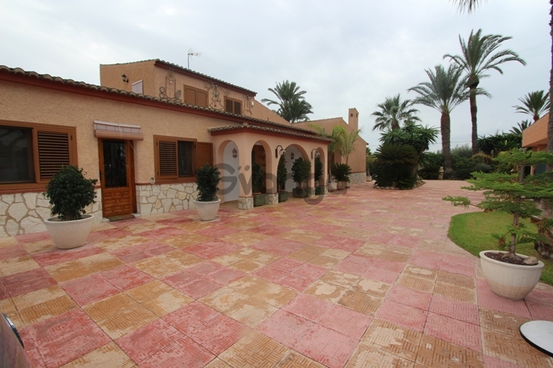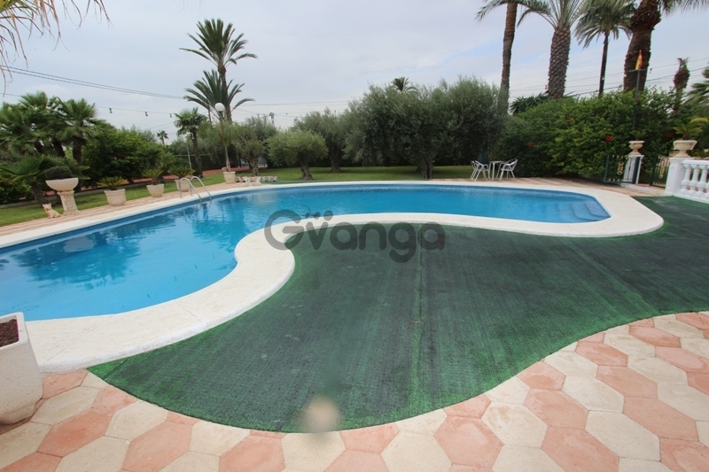 Stunning chalet of 240m2 with 4000m2 in the field of Elche. This home consists of 4 bedrooms, 3 bathrooms, kitchen and large living room. The house is equipped with air conditioning and heating. It has a plot of 4000m2 garden, large private pool, surface parking and storage. It is located just 3 km from the main shops and less than 20 minutes drive from the beaches of La Marina and Guardamar del Segura. Private Pool