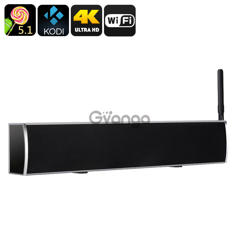 - Low profile Android TV Box and sound-bar is your all in one media hub that will bring your TV to life