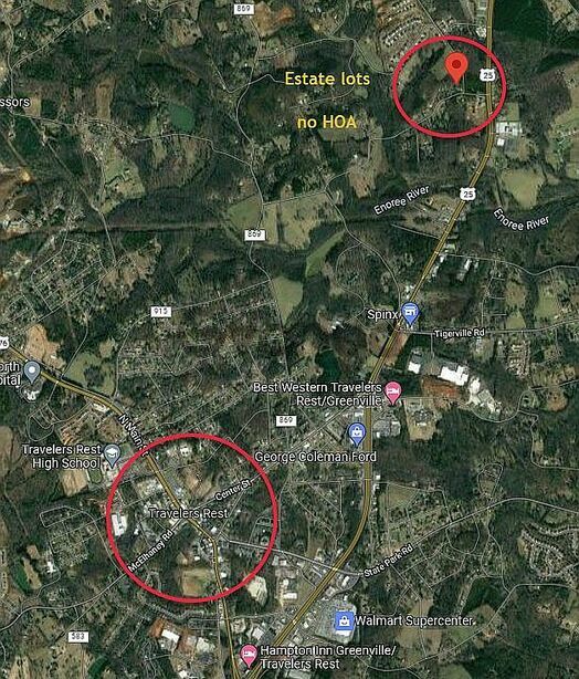 Estate Lots lot 2 - 82,500 per lot no HOA. Greenville water, duke energy, septic approved, att fiber, gently flat, driveways installed, restrictions minimum 2200sf, no vinyl. FSBO - bobby brokers protected 3.