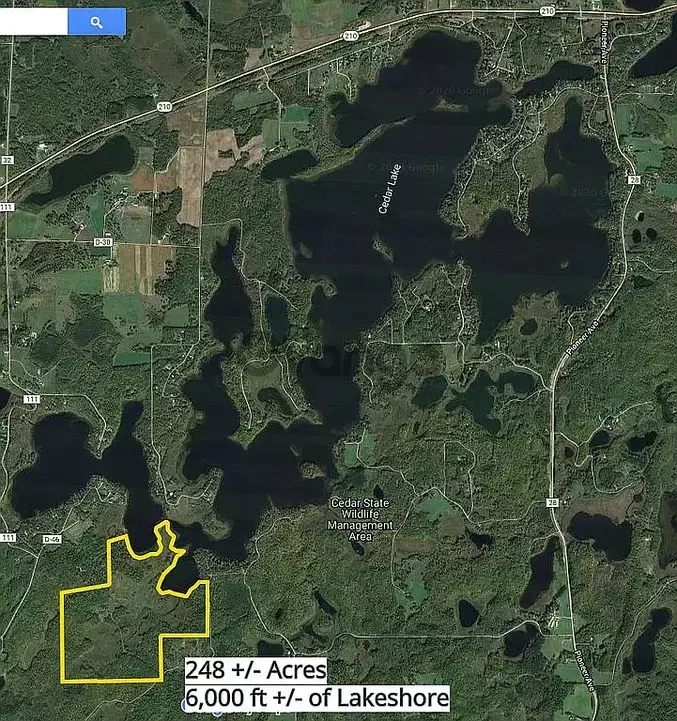 Will split lots. More land available . INCREDIBLE BEAUTY This one of a kind property on Cedar Lake in the Brainerd Lakes Area is truly a sportsmans dream. Total of 248 acres available of countryside with unspoiled forest, wetland, rolling grassland with over 6000 feet of Lakeshore 2 flowing streams. Cedar Lake is over 1750 acres with a water clarity of 12 feet and water depth of 120 feet. Less than 5 miles from Ruttgers Resort on Bay Lake. In the heart of the Brainerd Lakes Recreational area. Buy as a private family retreat or create your own development. Proposed Development Survey Available upon request. These coordinates will give the road access to property. 462840. 3N 934839. 9W