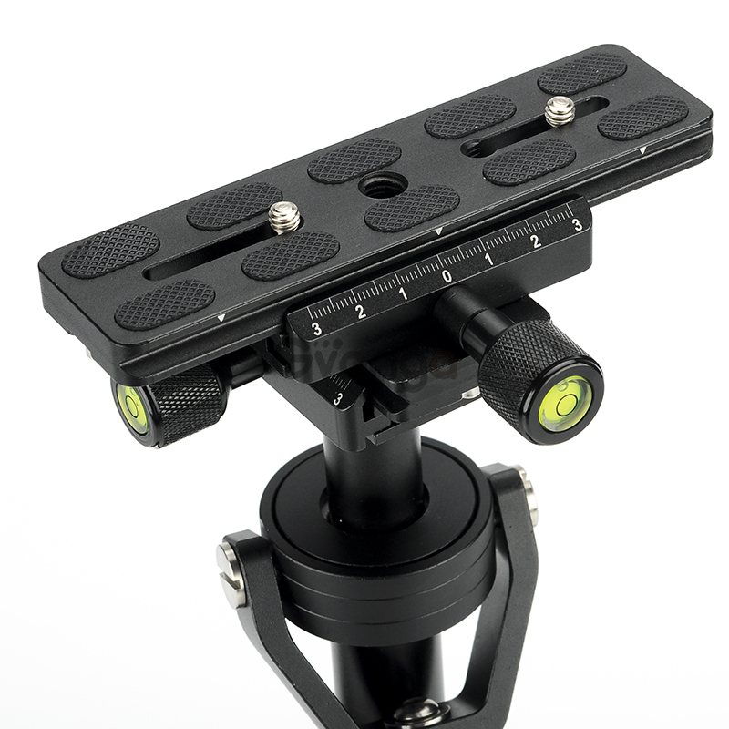 The S40 camera stabilizer will make a perfect for most popular SLR, SSLR and video cameras, weighing from 0.2 to 2 kg. The camera stabilizer itself is quite lightweight and comes with a sturdy aluminum alloy construction – making for greater durability and damage resistance. It also features a convenient rubberized handle, letting you get a firm grip of the device as you hold it and focus on your shooting.