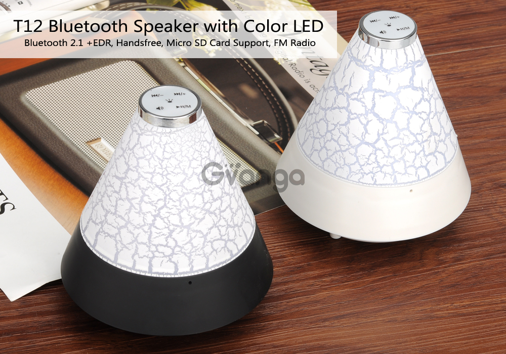The T12 Bluetooth Speaker can not only stream your favourite music and let you handle calls handsfree, but will also create a tailor-made light show just for you, thanks to its built-in color LEDs.