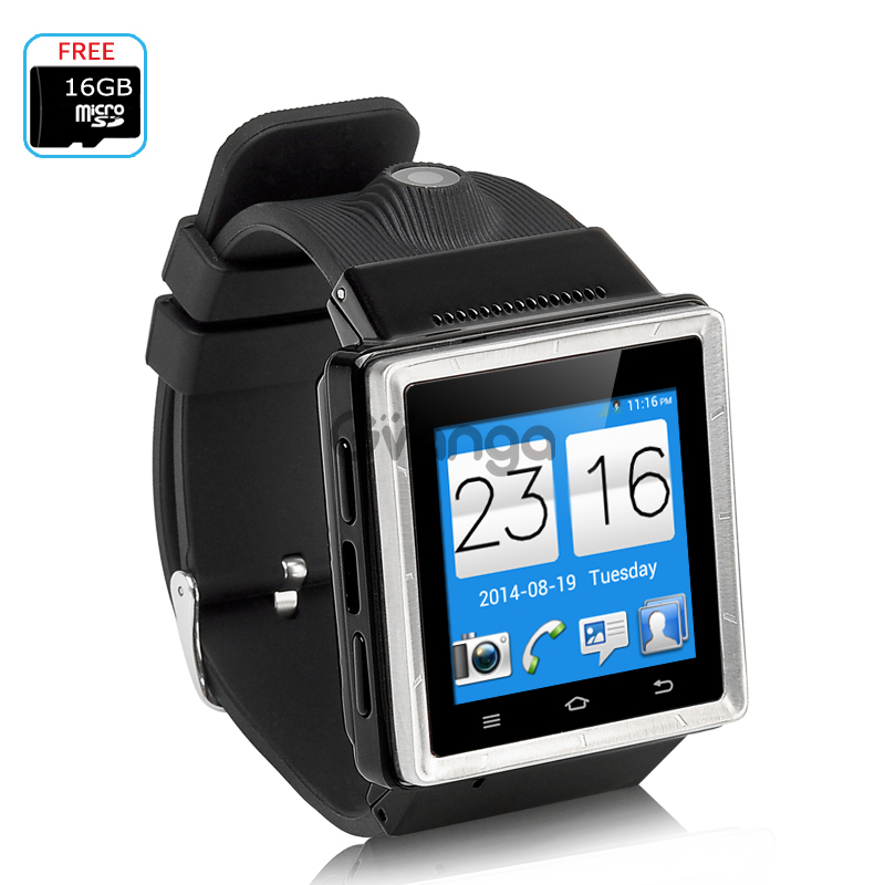 Take photos from your wrist as there is a built-in 2 megapixel camera on the strap so you can take photos as they happen. Save the photos onto the 4GB of internal memory or use a micro SD card of up to 32GB to store and transfer your files. Coming with a free 16GB micro SD card, this watch phone gives you a head start so you can start storing your media library to enjoy later.