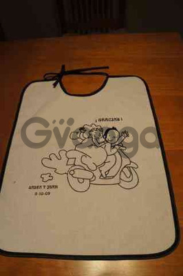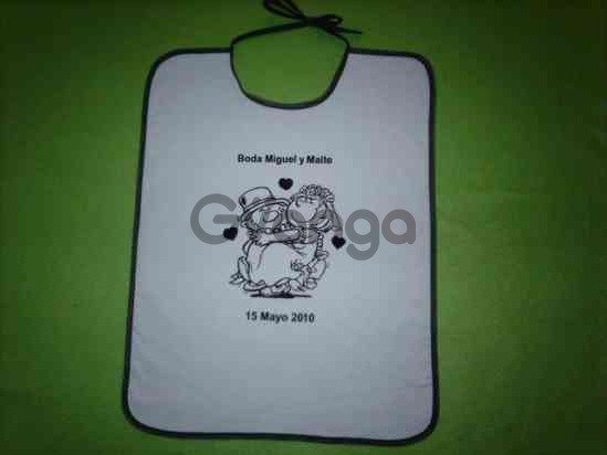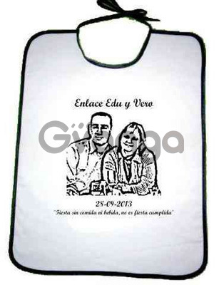 Sorpréndelos con un original babero de tu boda con la foto, día y nombre.