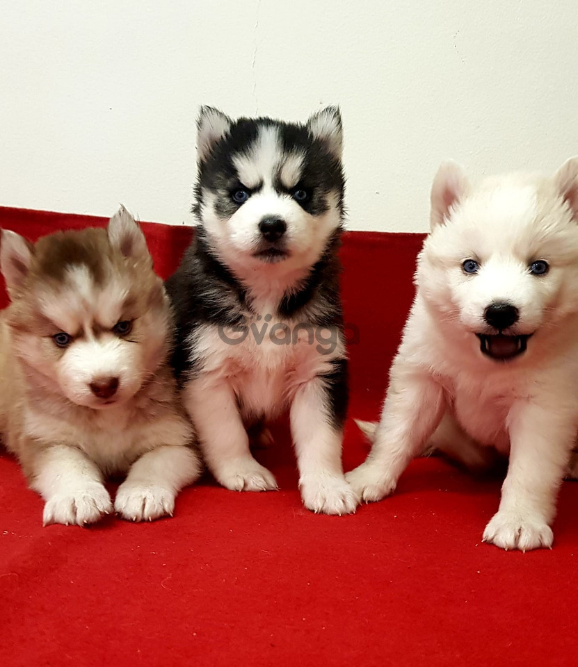 Vendo cachorros husky siberiano de ojos azules machos y hembras vacunados y desparasitados con cartilla sanitaria tienen dos meses criados en casa con niños