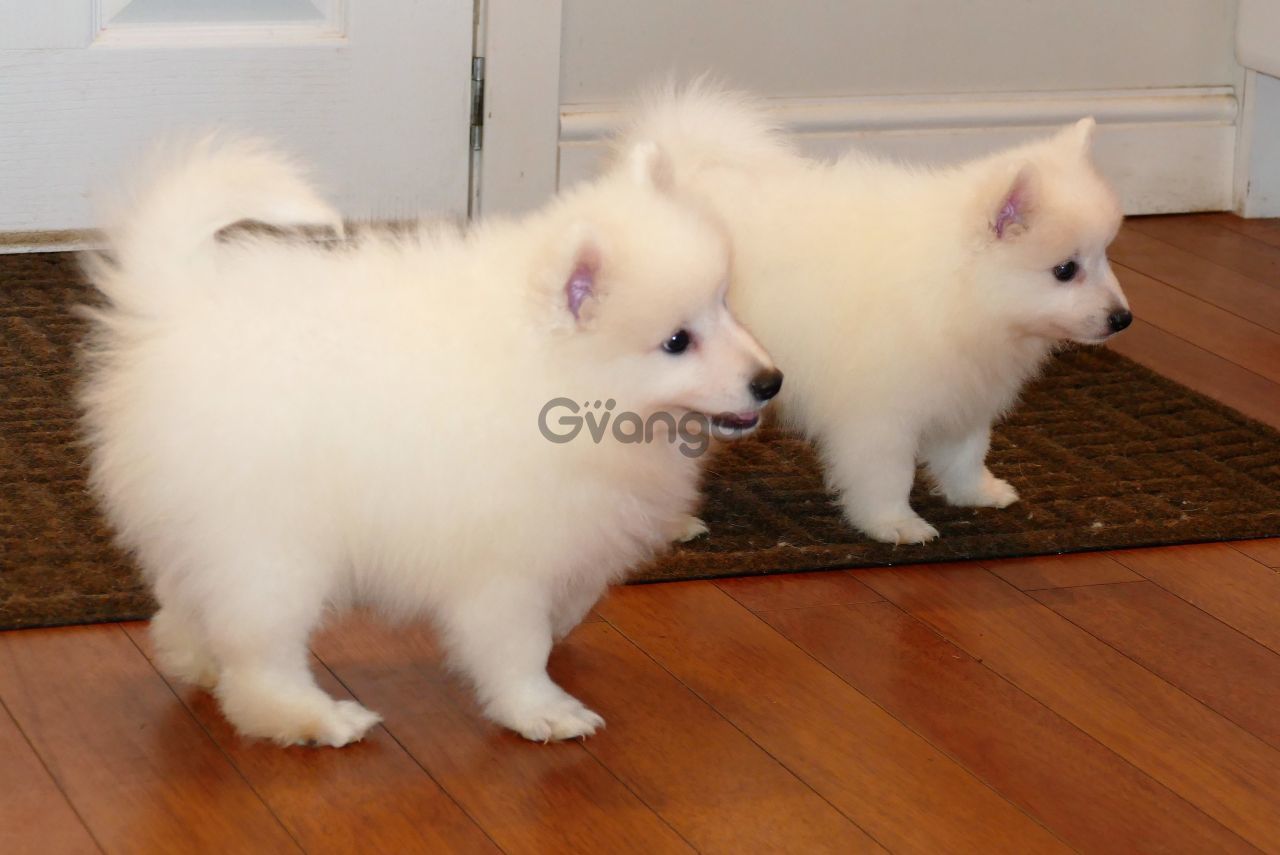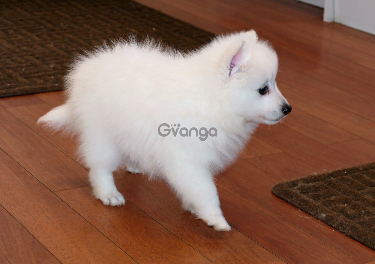 KC Registered Japanese Spitz puppies. 2 girls and 1 boy available. Micro chipped, Vet health checked, wormed and 1st vaccination. Wonderful natured and intelligent dogs that make terrific family pets. Mother and father can be seen with pups.