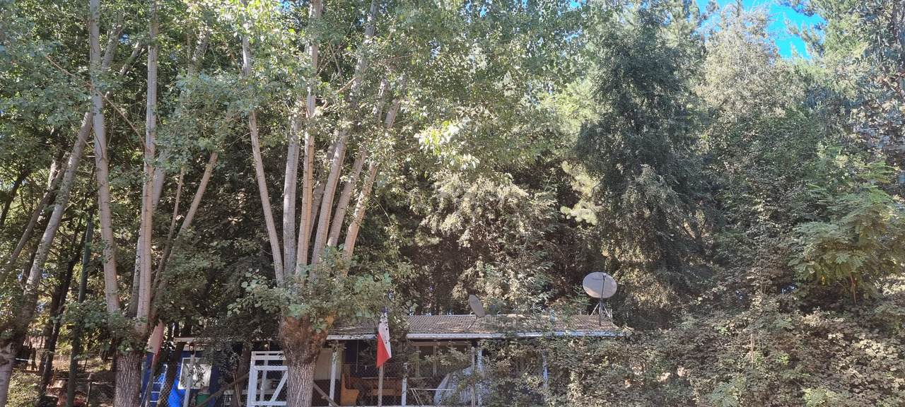 el terreno tiene diversidad de arboles; pinos, eucaliptus,robles,maitenes,aromos,alamos,bosque de acacias,albaricoqueros,ciruelos, manzaneros,maitenes,nogales,laureles,etc