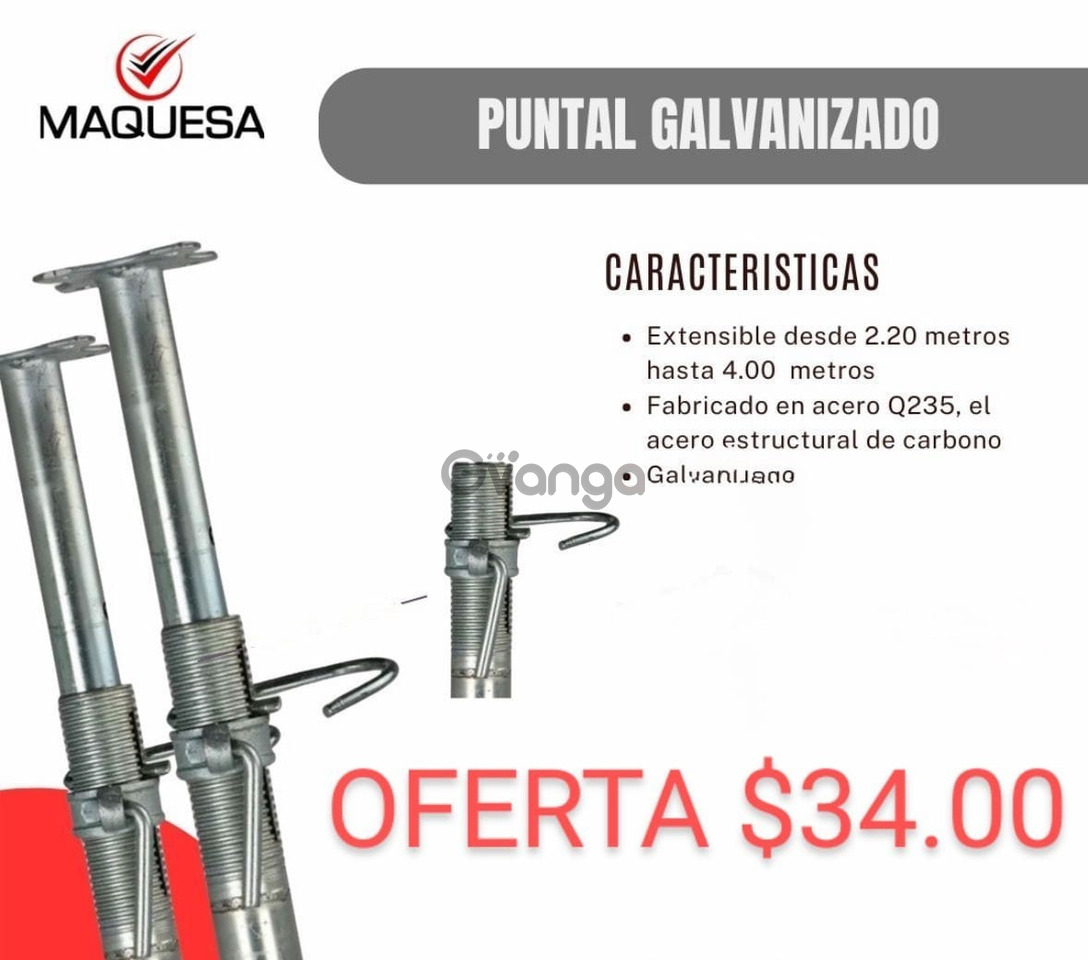 PUNTALES GALVANIZADOS OFERTA $34.00 Hechos en China cón norma y certificación Internacional. Excelente resistencia a la intemperie. Gran oportunidad de inversión con beneficios muy provechosos para usted. Fabricados de acero estructural de carbono, su importancia es su limite de elasticidad. Extensible de 2.20 mts. hasta 4 mts. Dimensiones, tubo exterior 60mm, tubo interior 48 mm, espesor (grosor) del tubo 2 mm, peso 11.81 Kgs. Importados directamente de China