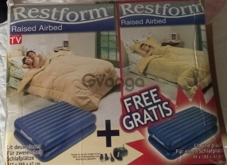 Se vende un pack de 2 colchones hinchables restform nuevos y sin usar con bomba de inflado y desinflado sus medidas del producto son ancho 137×188×47 centímetros y otra es de 99×188×47 uno de ellos es doble material nailon incluyen 3 almohadas pequeñas para las cervicales es ideal para invitados viajes huéspedes inesperados niños camping piso de estudiantes apartamento pequeño caravana casa de campo etc...