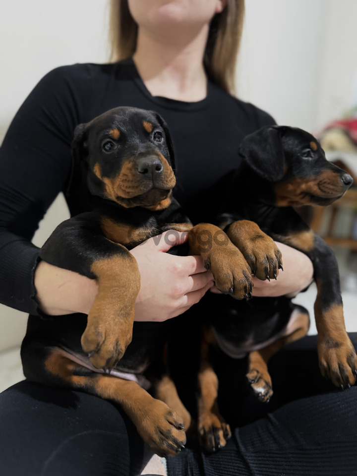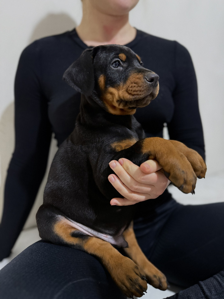 Пропонуються шикарні, крупні цуценята добермана,Резерв! дата народження 26.10.2025. Хвостики вже купіровали, вушка можна купіровати за бажанням власника. Є хлопчики та дівчата. Батьки на фото, мама чорного підпалу, батько шоколадного.