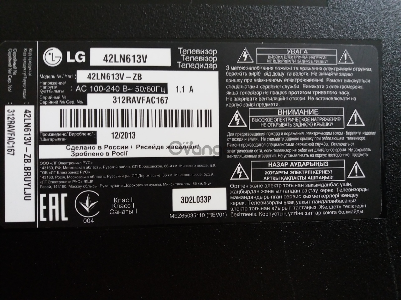 Демонтированы из рабочего телевизора LG 42LN613V (model 42LN613V-ZB) с поврежденной матрицей, панель LC420DUE (SF) (R4).