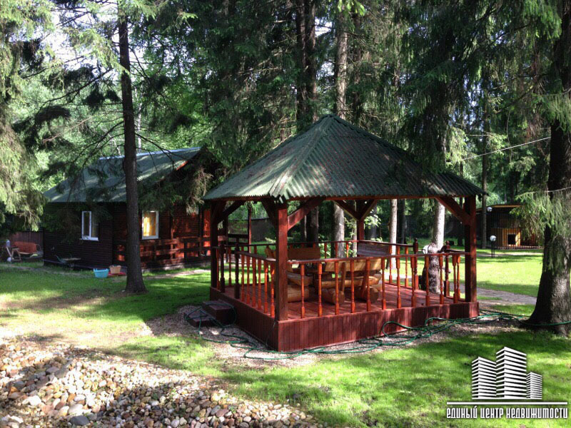 Красивый участок с лесными деревьями, и ландшафным дизайном. Огорожен по периметру забором, сухой. Имеются ворота для автомобиля и двухэтажный отапливаемый гараж, с тренажёрным залом. Так же на участке есть дровяная баня и беседка. Дом выполнен из бруса 140 x 140 мм., утеплён и отделан качественным сайдиногом. В доме просторная кухня гостиная, четыре спальные комнаты, два сан-узла. Так же есть выход на летнюю веранду. Отличный дом для круглогодичного проживания и отдыха для большой семьи.