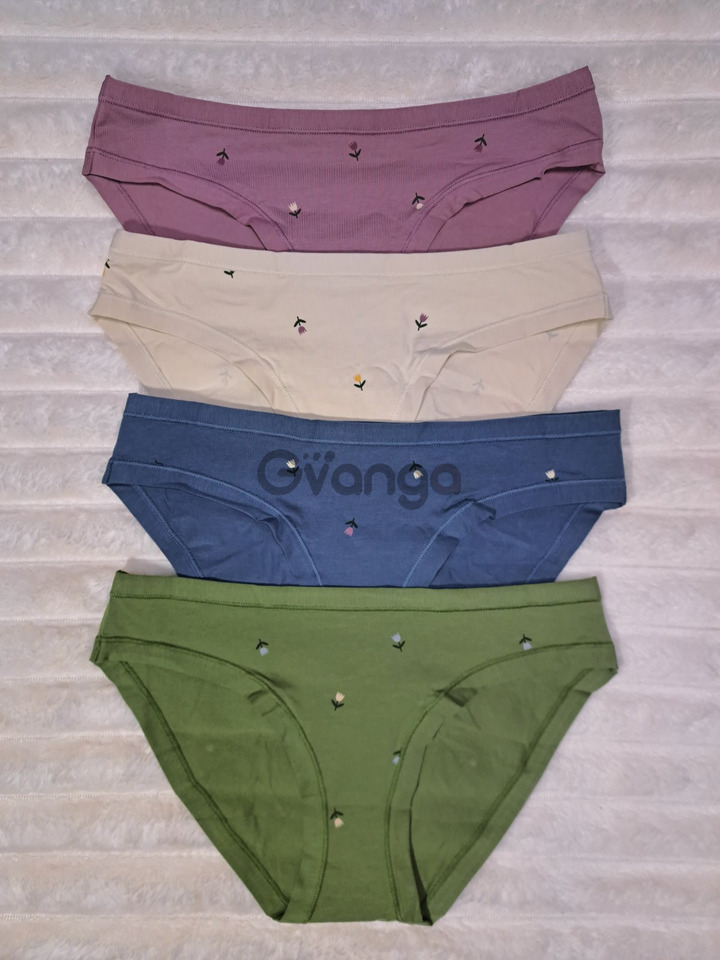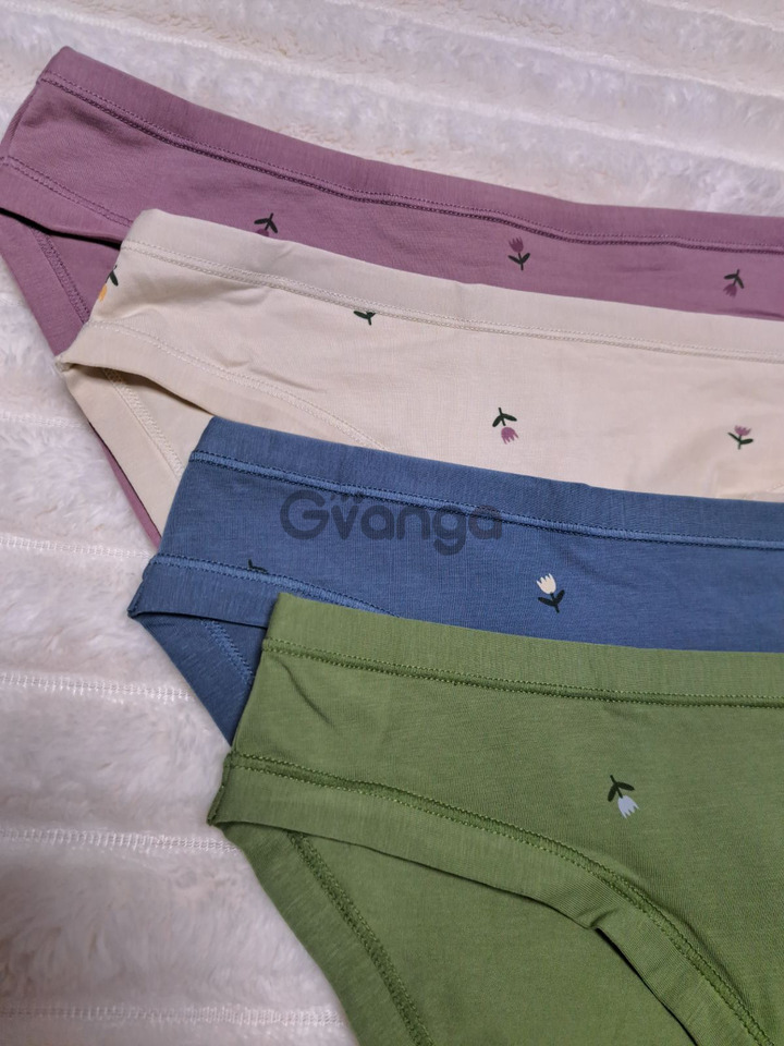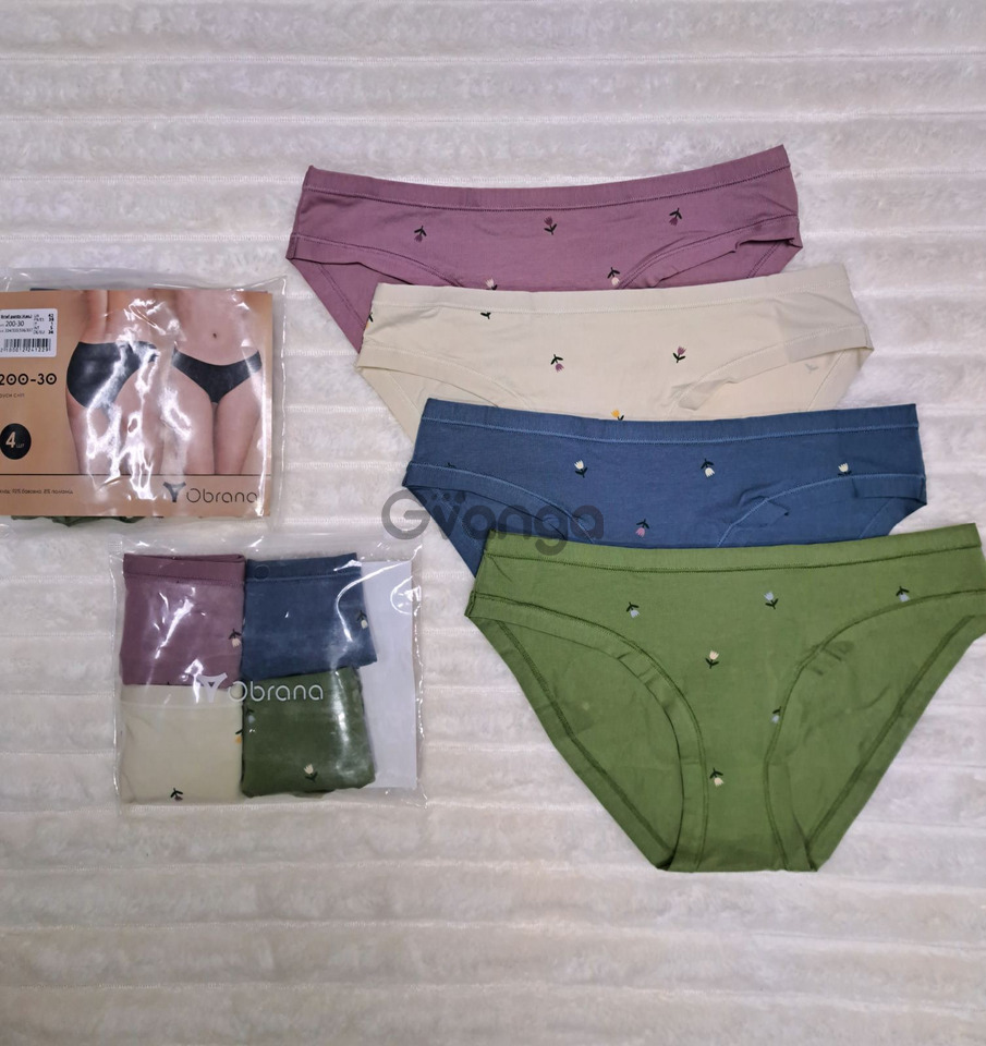 В упаковке 4 шт. трусиков в ассорти цветов, декорированы с цветочным принтом.