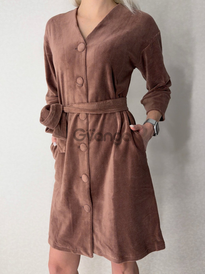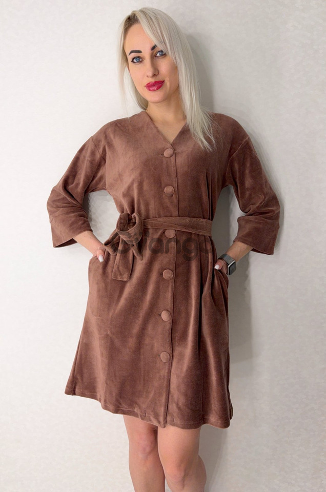 Стильный женский халат в благородном кофейном оттенке — идеальное сочетание уюта, женственности и практичности.