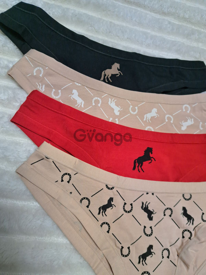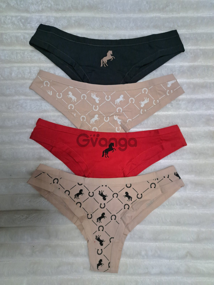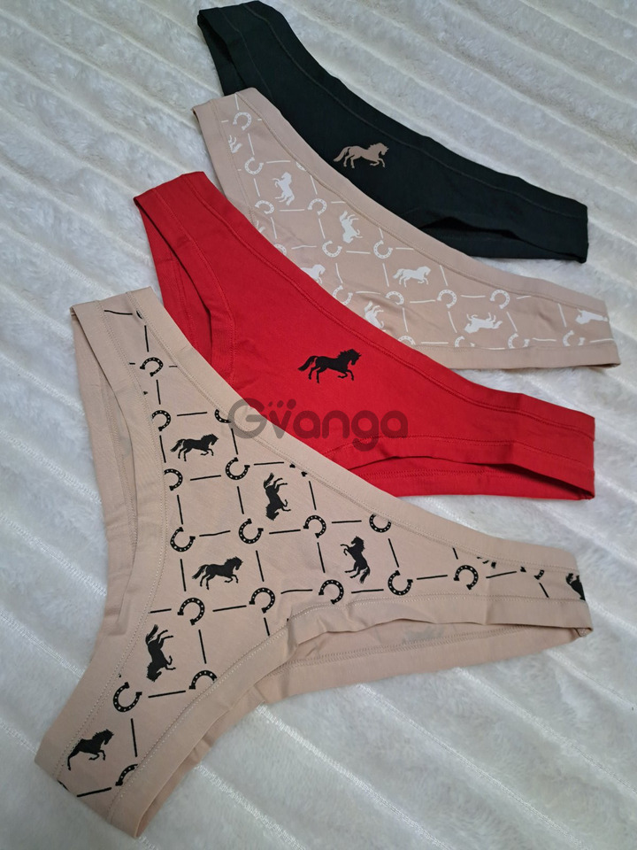 В упаковке из 4 трусов разного цвета с рисунком лошади и подков. Отличный вариант для каждодневной носки в летний сезон.