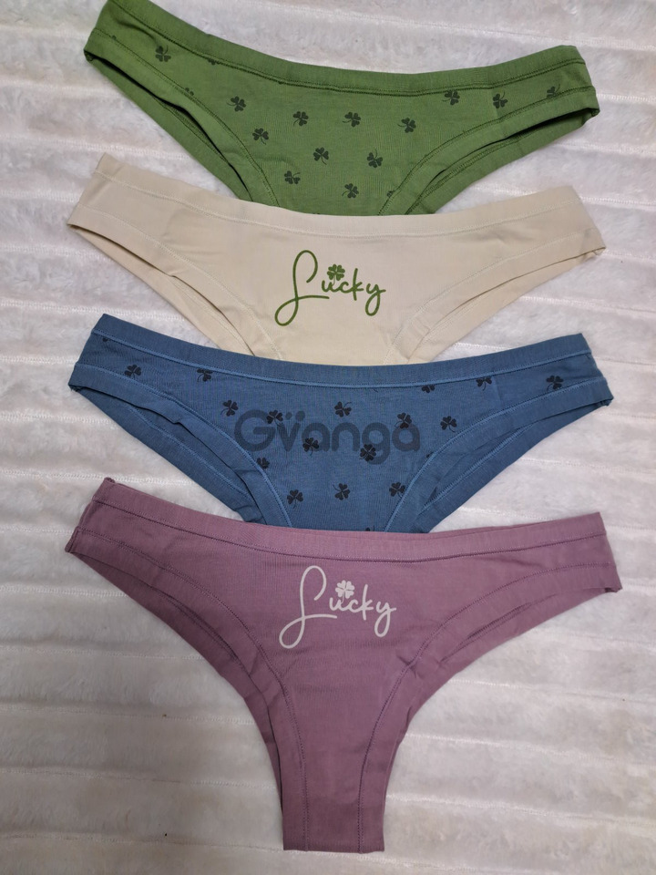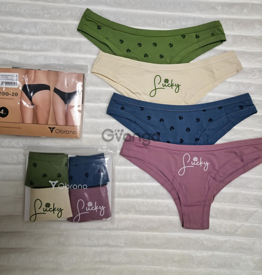 Упаковка из 4 трусов в ассорти цветов и цветочным принтом и принтом-надписью. Модель средней посадки, что позволяет белью не выделятся под облегающей одеждой.