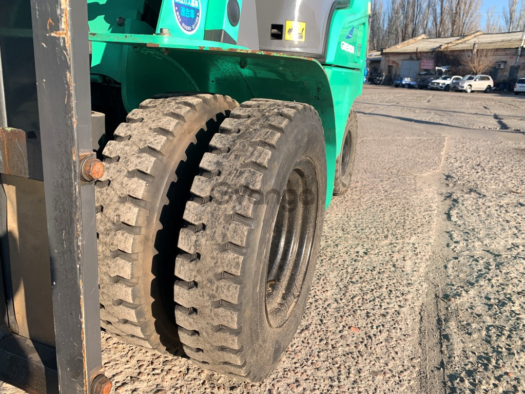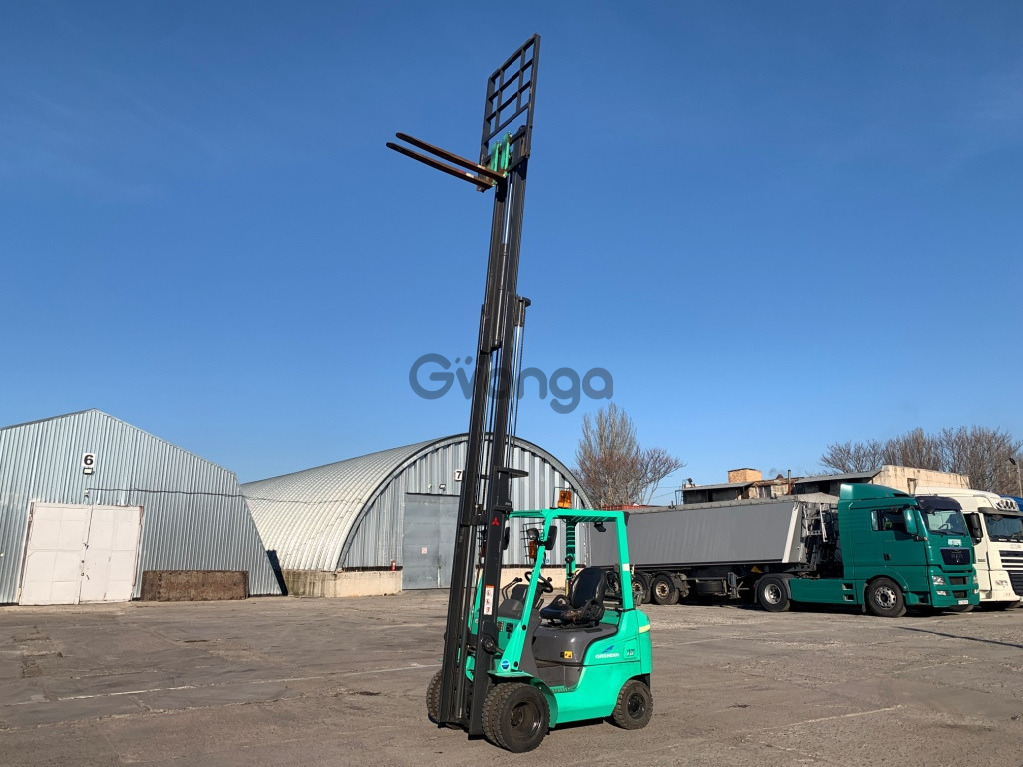 Автонавантажувач вилковий Mitsubishi, на спарці пневмо, з щоглою триплекс 5.5 метрів. Напрацювання 9475 мотогодин. Випуск грудень 2016 року. Модель FGE15T. Номiнальна вантажопідйомність 1.5 тонни. Максимальна висота підйому вантажу 5.5 метри. Щогла трьохсекційна (triplex/триплекс) у якій вила піднімаються незалежно від секцій щогли (з вільним ходом). Двигун газ-бензиновий, з заводським газовим обладнанням, завдяки чому автонавантажувач у теплу пору року можє запускатись вiдразу на газу, без прогріву системи на бензині. Коробка перемикання передач надiйна i найпоширенiша на данний час - гiдромеханiка (автоматична із гідротрансформатором). Обладнаний сучасним економічним інжекторним двигуном Nissan K21. 4-циліндровим, робочим об'ємом 2.1 літра і потужністю 48 к. с. який славиться своєю надійністю і невибагливістю і без особливих змін встановлюється на автонавантажувачах по сьогоднішній день і головне ремонтопридатний. Колеса спарка 12 діаметра на ведучiй осі, що покращує прохідність автонавантажувача і збільшує його кліренс. Додатково встановлена грубка.