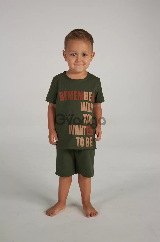 Комплект одягу із якісної бавовни кольору хакі. Складається з вільного крою футболки та шорти.