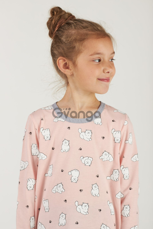 Комплект із кофточки вільного силуету, з довгими рукавами, декорована малюнком котиків.