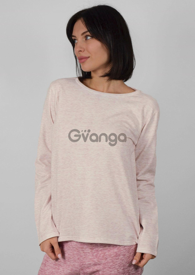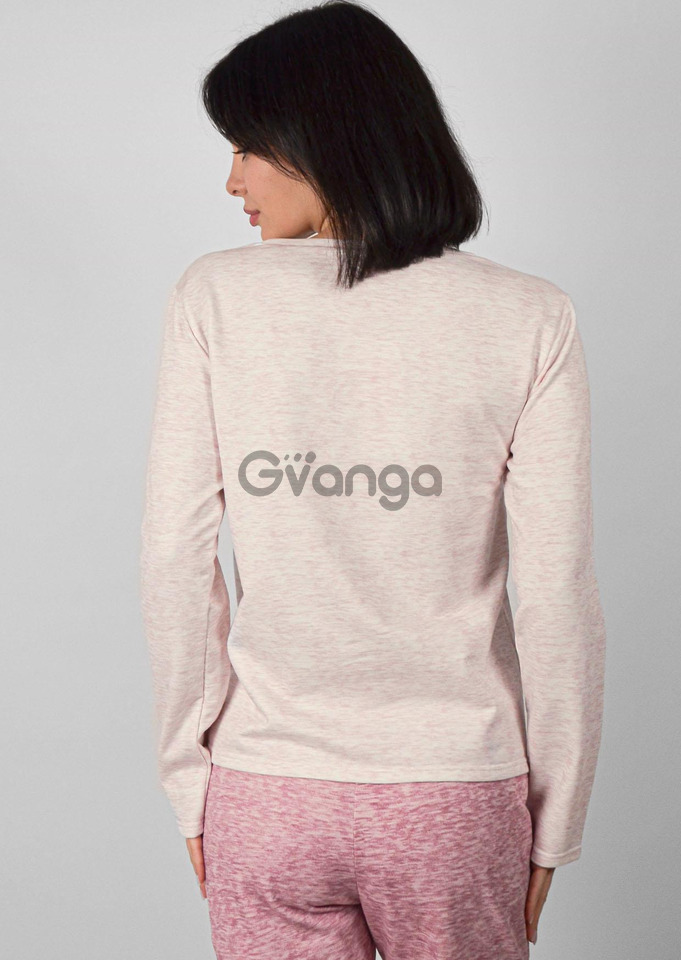 Кофта світло-рожевого (меланж) кольору з довгим рукавом і круглою горловиною, має вільний силует.