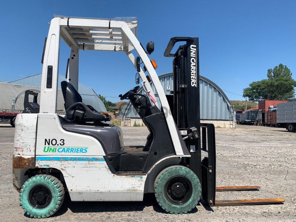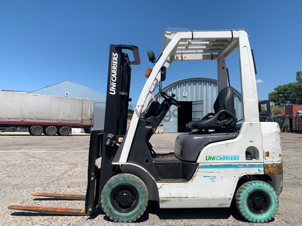 Вилковий автонавантажувач Nissan на 1.5 тонни на немаркiй гумі. Модель P1F1A15D. Рік випуску 2015. Номiнальна вантажопідйомність 1.5 тонни. Максимальна висота підйому вантажу 3 метри. Щогла двохсекційна (duplex) яка не втрачає вантажопідйомності при висоті підйому. Двигун газ-бензиновий, з заводським газовим обладнанням, завдяки чому автонавантажувач у теплу пору року можє запускатись вiдразу на газу, без прогріву системи на бензині. Коробка перемикання передач надiйна i найпоширенiша на данний час - гiдромеханiка (автоматична із гідротрансформатором). Обладнаний сучасним економічним інжекторним двигуном Nissan K21. 4-циліндровий, робочим об'ємом 2.1 літра і потужністю 48 к. с. який славиться своєю надійністю і невибагливістю і без особливих змін встановлюється на автонавантажувачах по сьогоднішній день і головне ремонтопридатний. Колеса 10 діаметра на ведучiй осі, що покращує прохідність автонавантажувача і збільшує його кліренс. Управління гідравлікою здійснюється простою і перевіреною часом системою - важелями. Не марка гума має спеціальний склад, завдяки якому вона не залишає слідів на наливних підлогах.