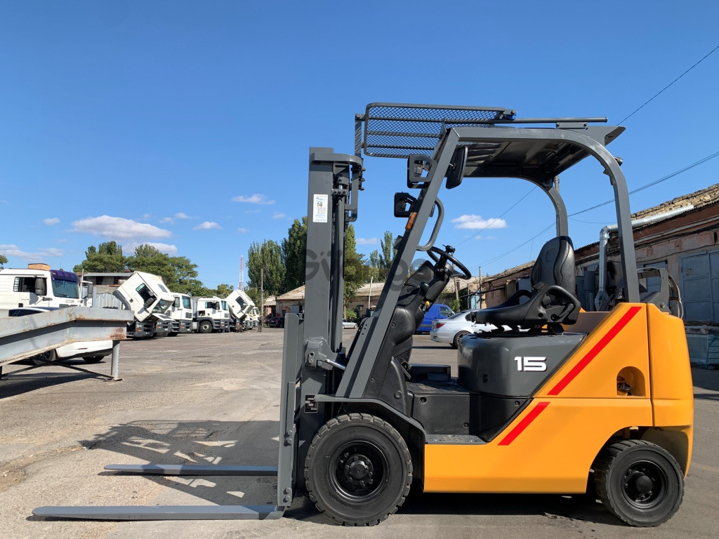Номинальная грузоподъемность 1,5 тонни, при центре веса 0.5 метра. Максимальная высота подъема груза 3 метра. Мачта двухсекционная (duplex) не теряет грузоподъемности при высоте подъема. Двигатель газ-бензиновый, с заводским газовым оборудованием, благодаря чему автопогрузчик в теплое время года может запускаться сразу на газу без прогрева системы на бензине. Коробка переключения передач надежная и распространена в настоящее время - гидромеханика (автоматическая с гидротрансформатором). Оснащен современным экономичным инжекторным двигателем Nissan GK21. 4-цилиндровый, рабочим объемом 2.1 литра и мощностью 48 л. с. славящийся своей надежностью и неприхотливостью и без особых изменений устанавливается на автопогрузчиках по сегодняшний день и главное ремонтопригодный. Колеса 10 диаметра на ведущей оси, что улучшает проходимость автопогрузчика и увеличивает его клиренс.