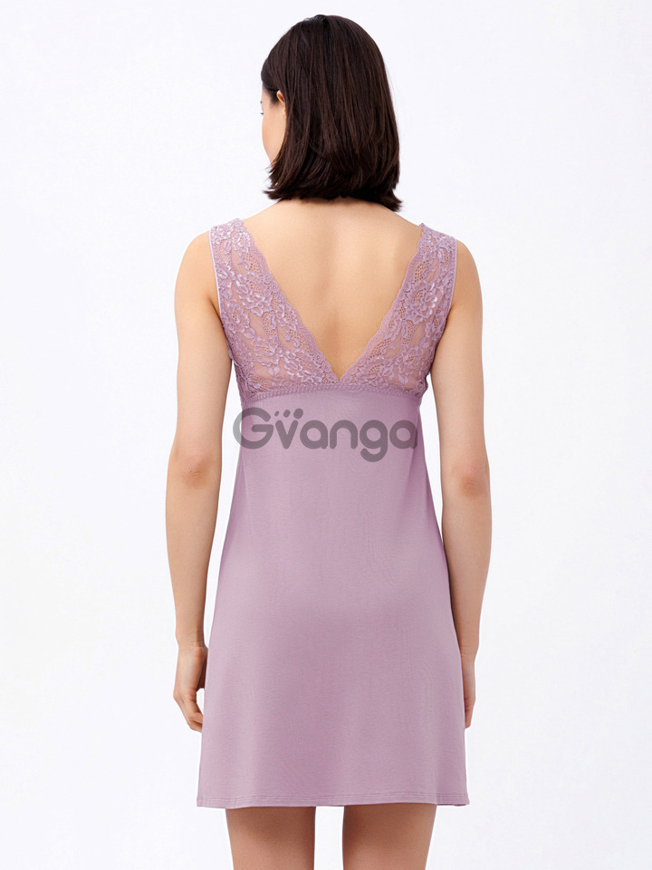 Має напівприталенний силует, довжиною вище колін, на широкій бретелі, виріз V-подібної форми. Нічна сорочка подкреслить переваги Вашої фігури.