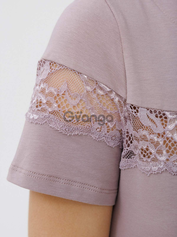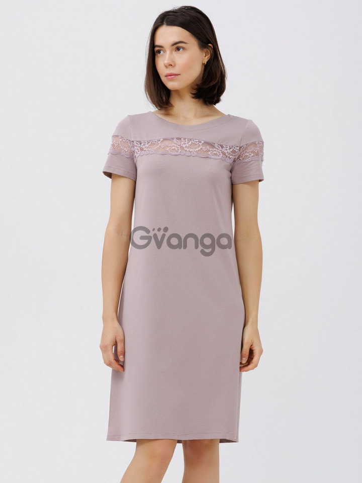 Нічнушка з бавовняного полотна рожевого кольору. Модель нічної сорочки прикрашена мереживною вставкою в зоні грудей та рукавах нічнушки.