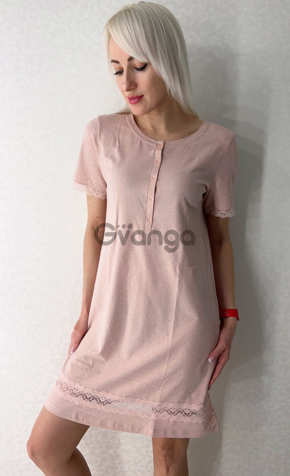 Нічнушка виготовлена із рожевого бавовняного полотна з додаванням еластанової нитки.