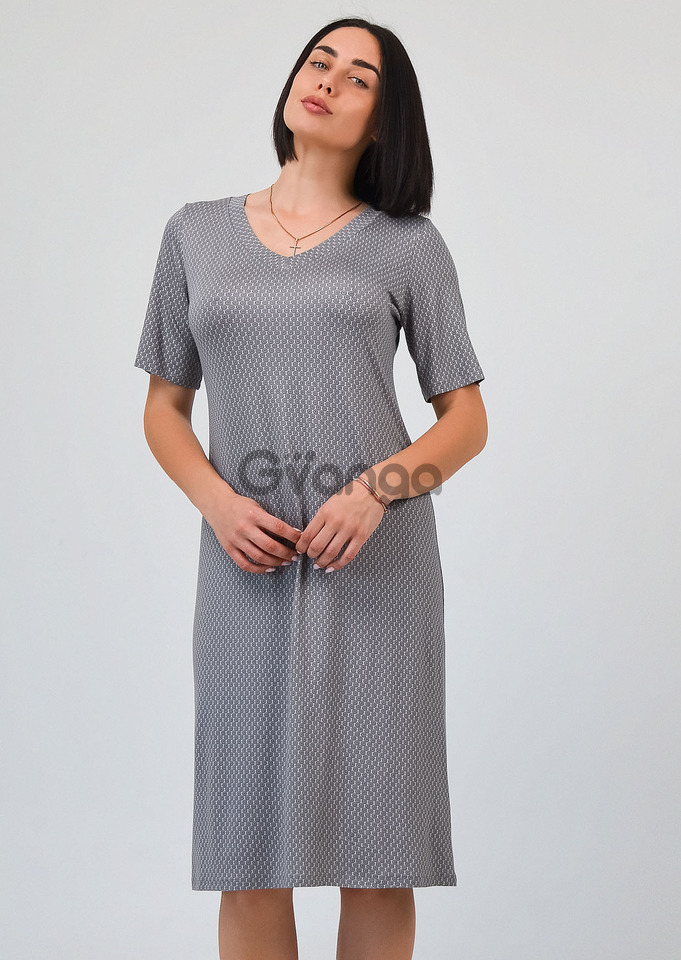 Нічна сорочка виготовлений із сірої віскозної тканини з оптимальним вплетінням еластану.