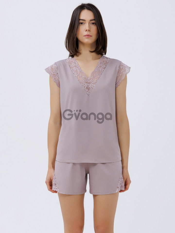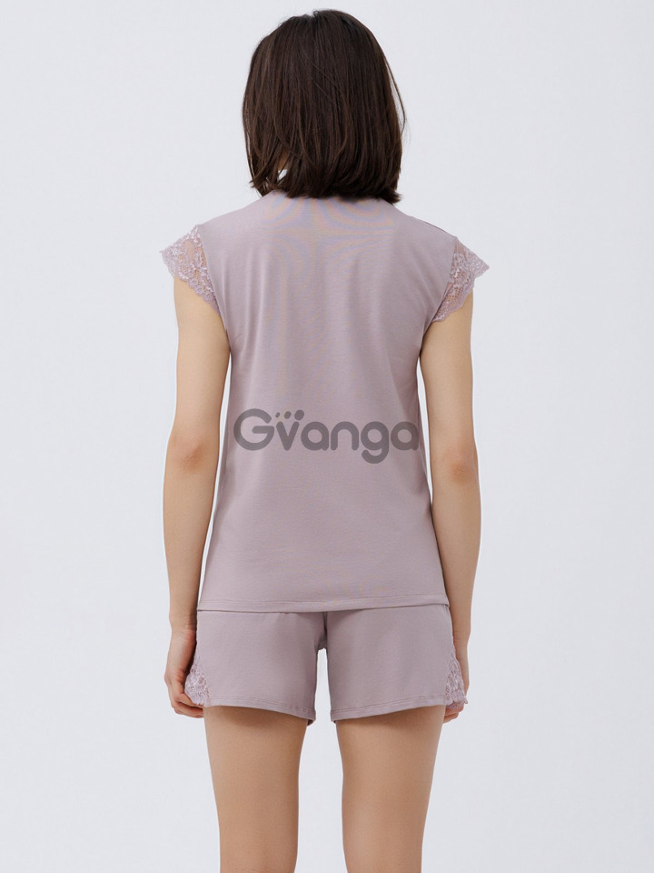 Піжама міцна, не сідає навіть після багаторазового прання. Комплект складається з футболки приталенного крою, з короткими рукавами із мережива і мереживними вставками в зоні декольте..