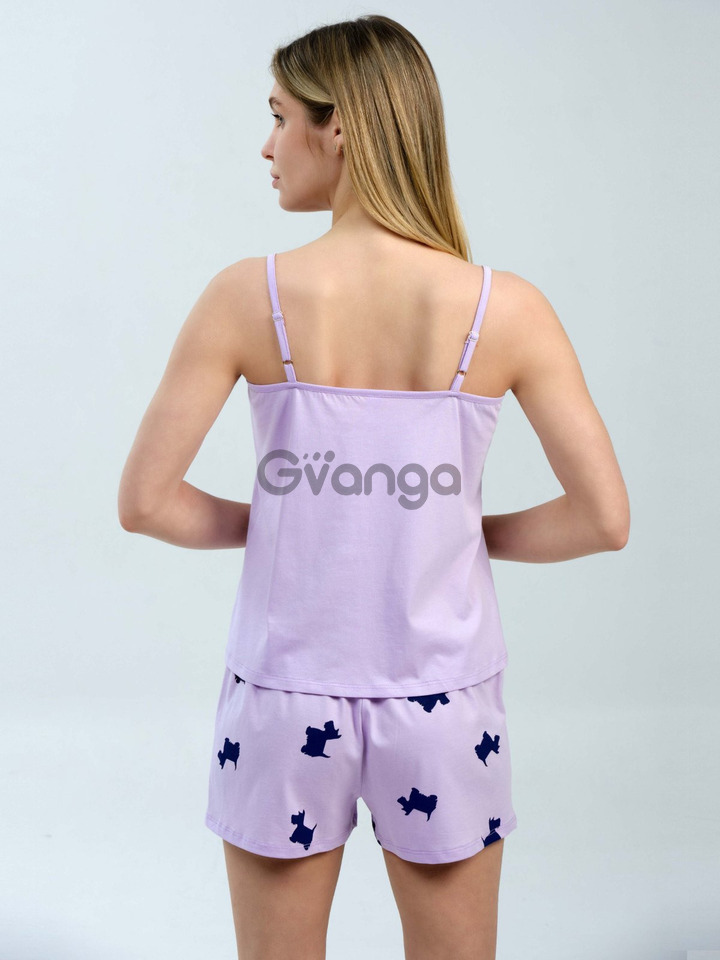 Легка, ніжна та зручна - жіноча піжама із колекції "Lavender Puppies" на тонких бретелях створена для вашого комфорту в теплі дні та затишні домашні вечори.