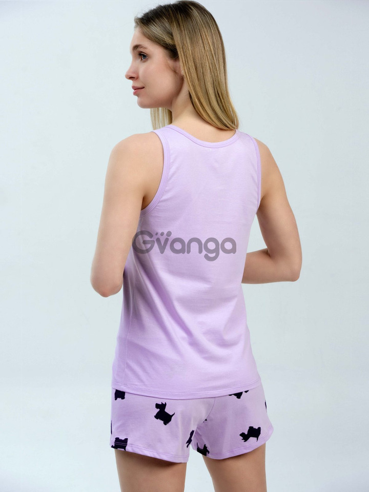 Легкий комплект складає із зручної майки і м'яких шорт, виконаних в модному лавандовому відтінку. Ідеальний вибір для сну, відпочинку або домашніх вечорів.