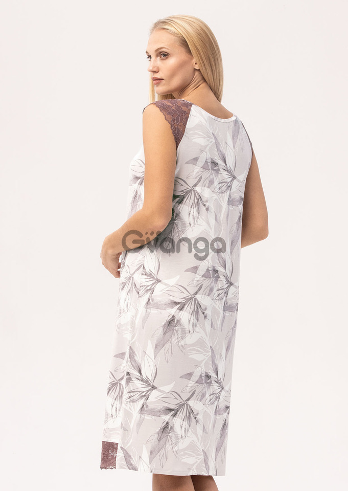 Нічна сорочка на широкій бретелі, вільного фасону, довжиною вище колін. Прикрашена квітковим принтом.