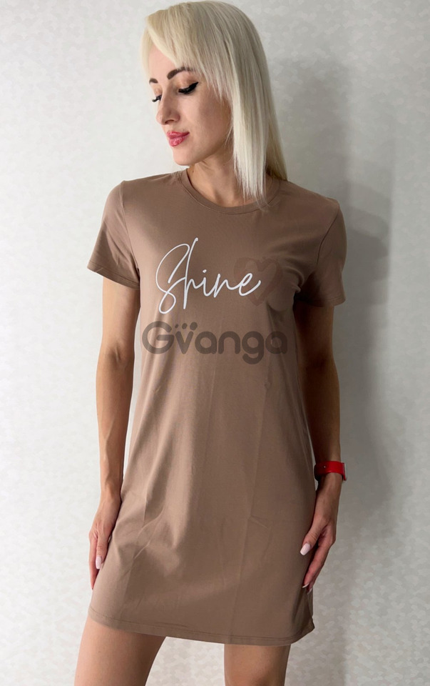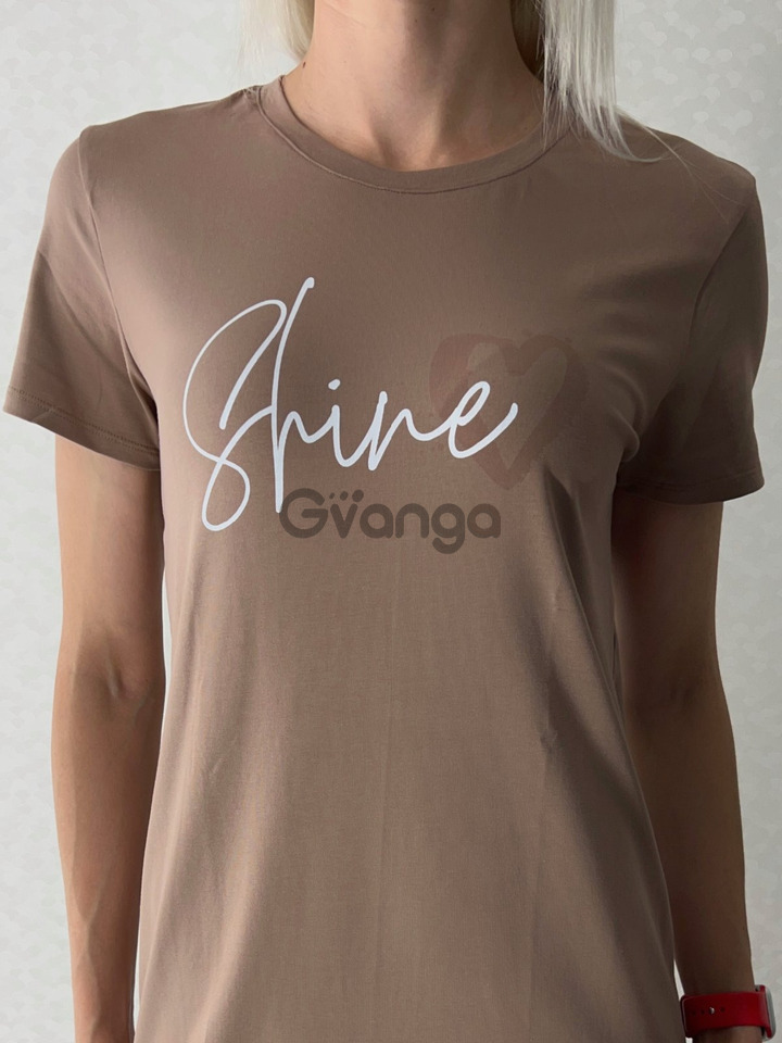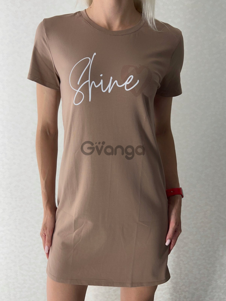Лаконічний дизайн доповнений стильним принтом на грудях — написом "Shine", яка додає сучасного акценту і робить образ яскравим навіть в домашній обстановці.