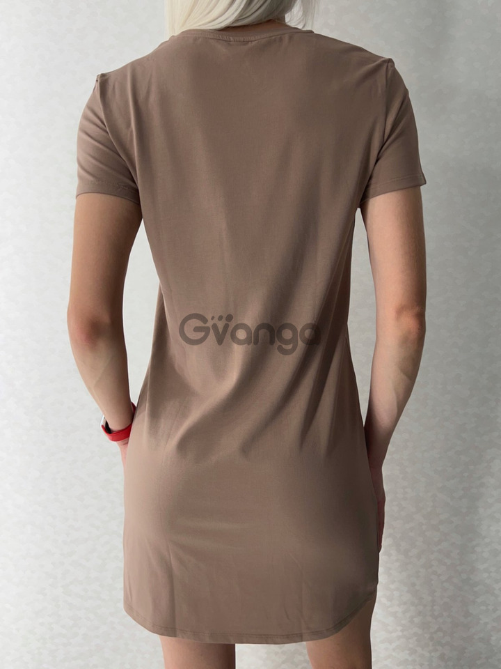 Круглий виріз горловини і короткі рукава надають моделі універсальність та дозволяють носити її як в якості нічної сорочки, так і як домашню туніку.