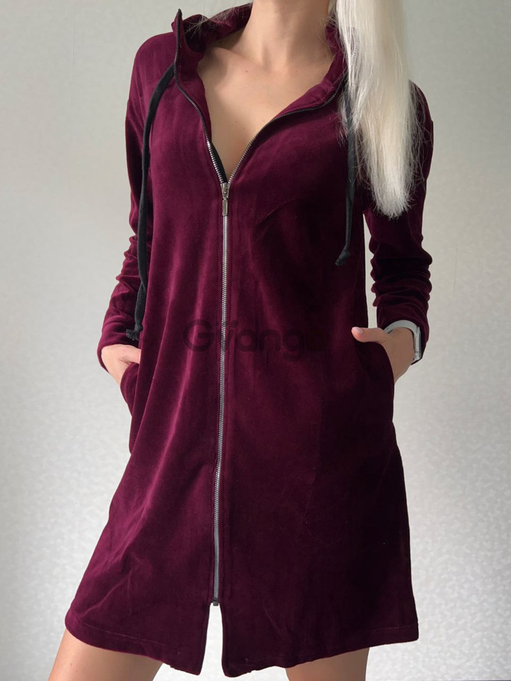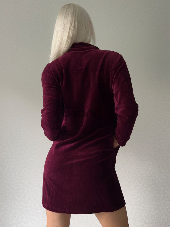 Представлена модель халата виготовлена з велюрового полотна бордового кольору.