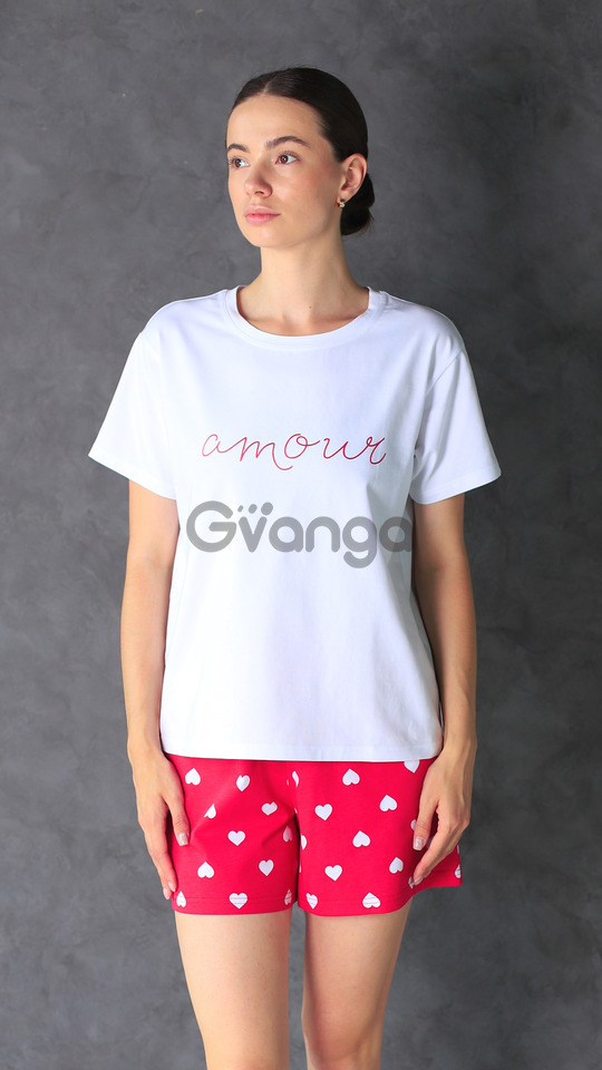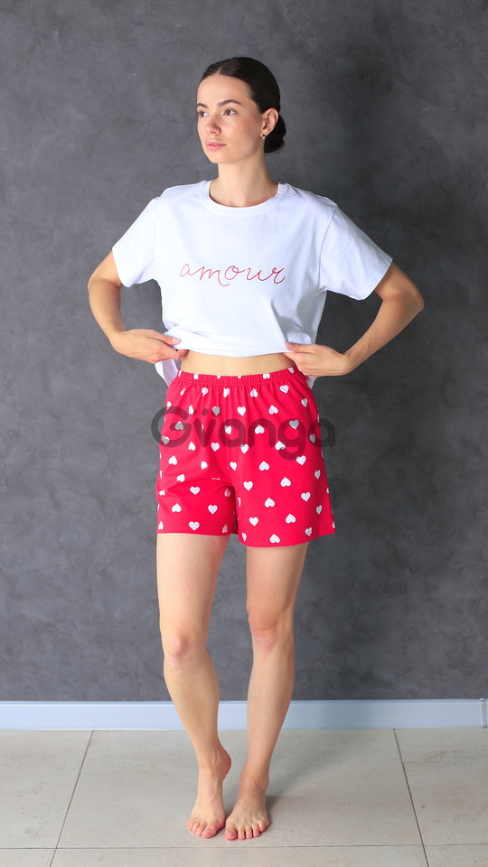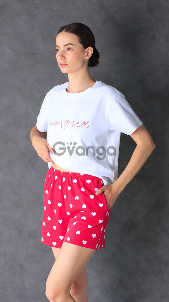 Жіноча піжама виготовлена із бавовни з оптимальним вплетінням еластанової нитки, складається с футболки і шорт.