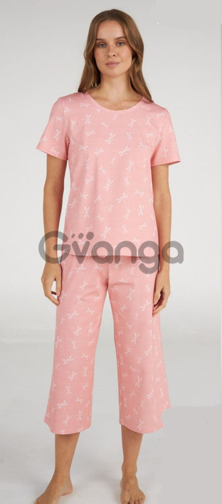 Піжама із ніжно-персикового бавовняного полотна, складається з футболки і бридж.